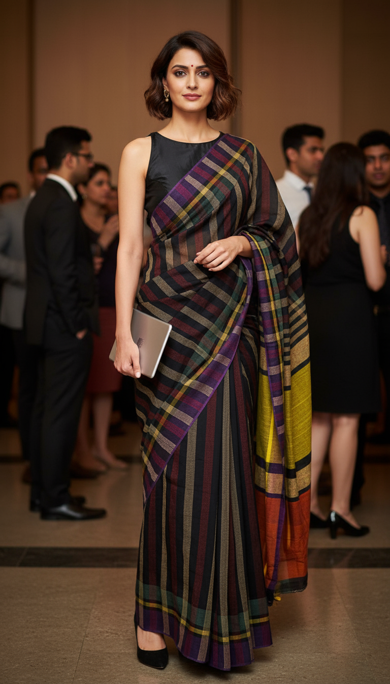 This Black & Purple Striped Cotton Saree is light, comfy, and stylish with a fun textured weave—perfect for adding a playful touch to your ethnic look!