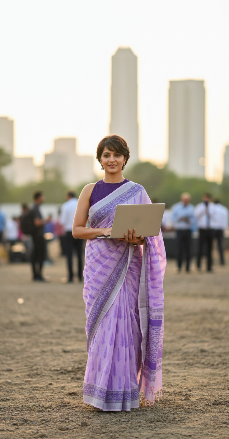 Blouse Piece: “Blouse designed in matching pallu fabric for a cohesive look.”