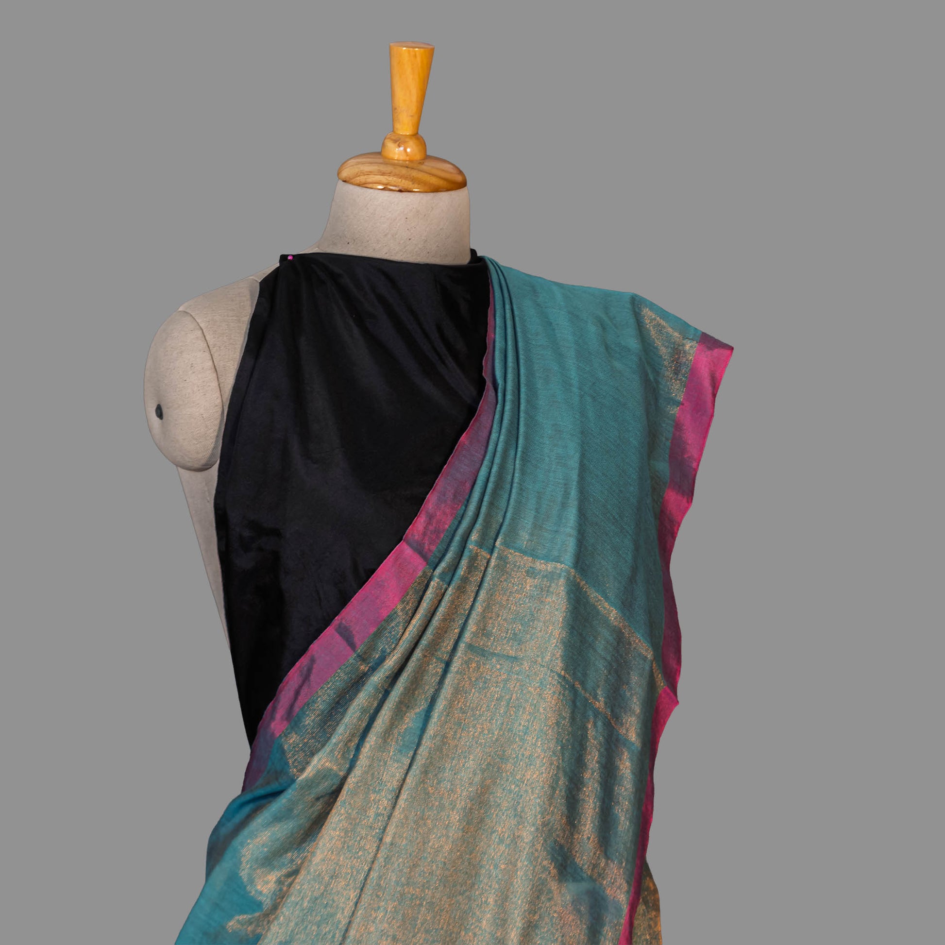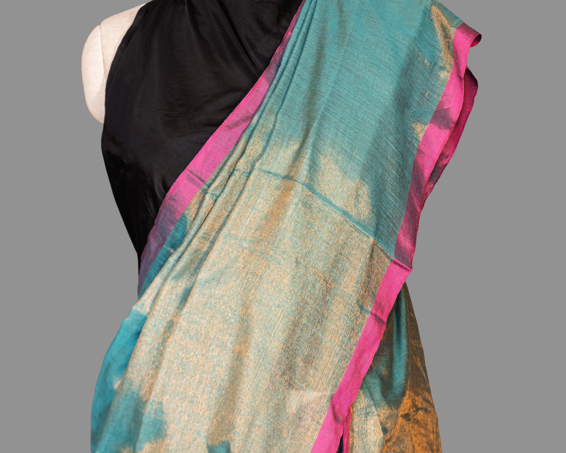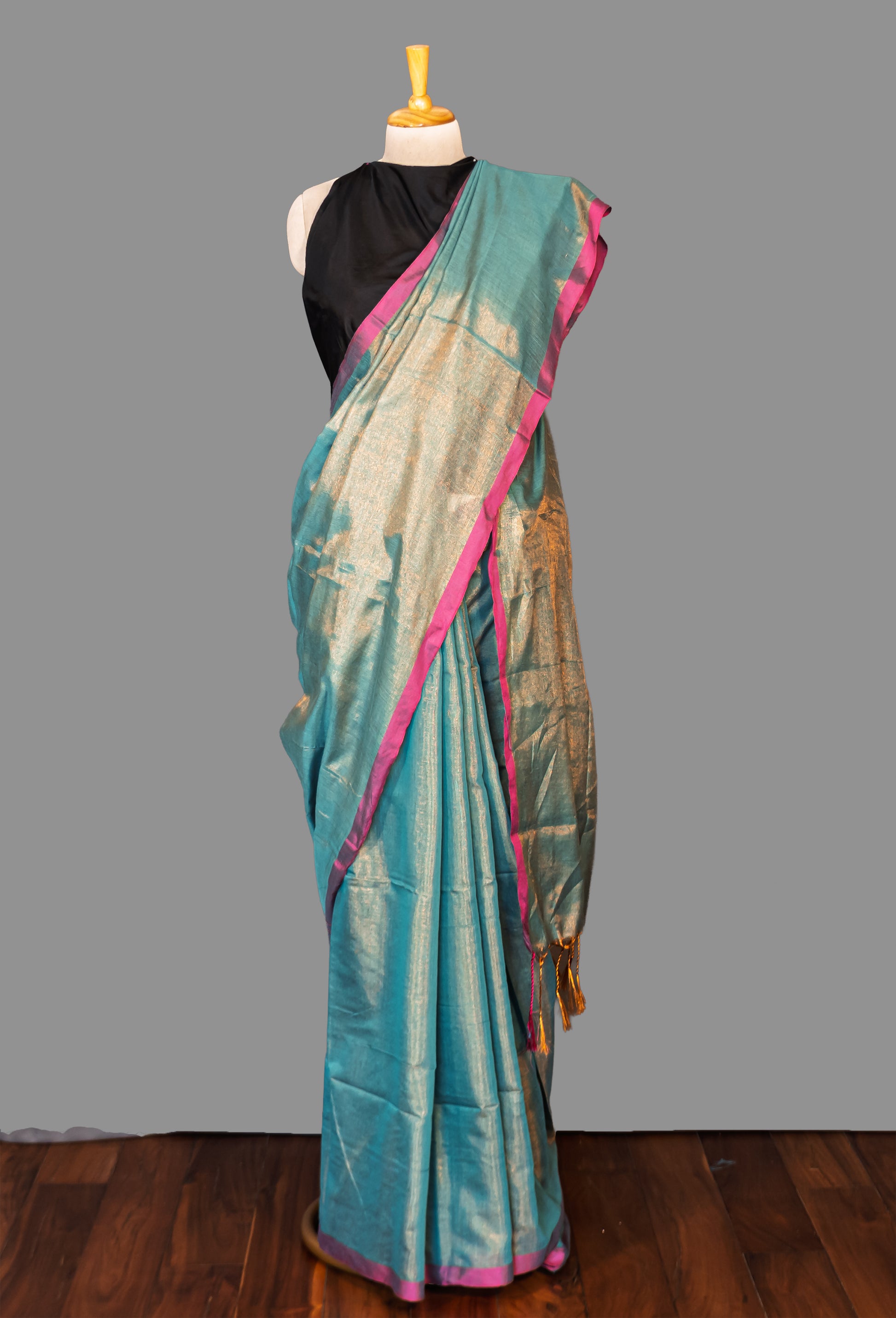 HANDLOOM COTTON TISSUE SAREEE-LILY GREEN-SHIMMER-HANDLOOM SAREE COLLECTION | simmpli ethnicc